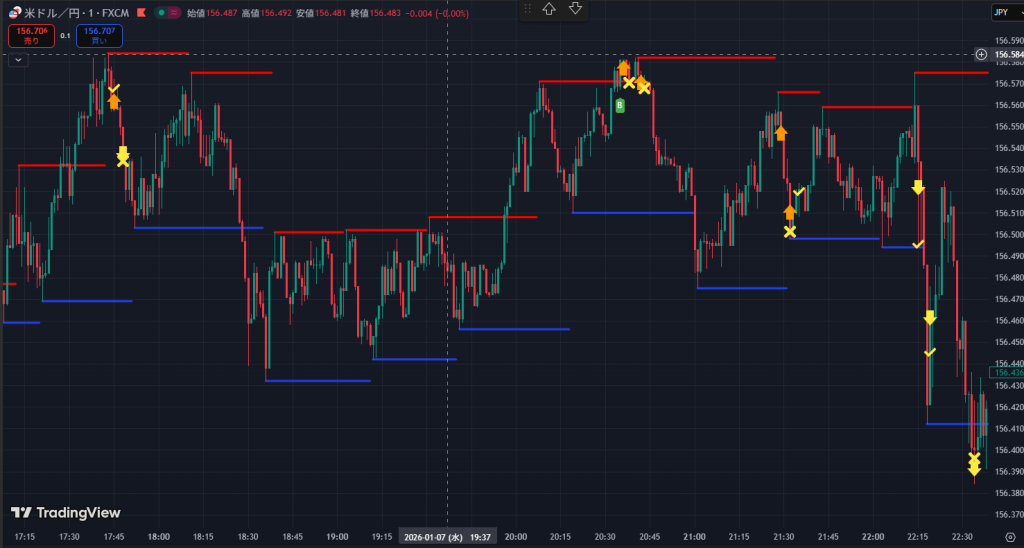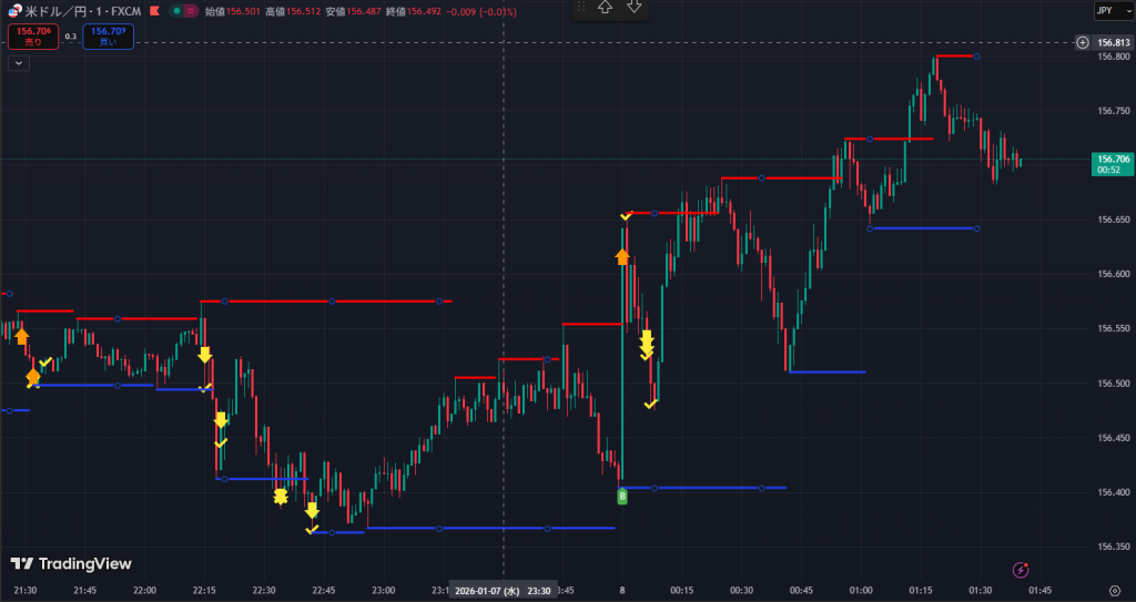 9時オープン直後の156.800を目指す急騰と強烈なリバウンドに血が騒ぎましたが本業が忙しくチャートを眺めるだけでした。