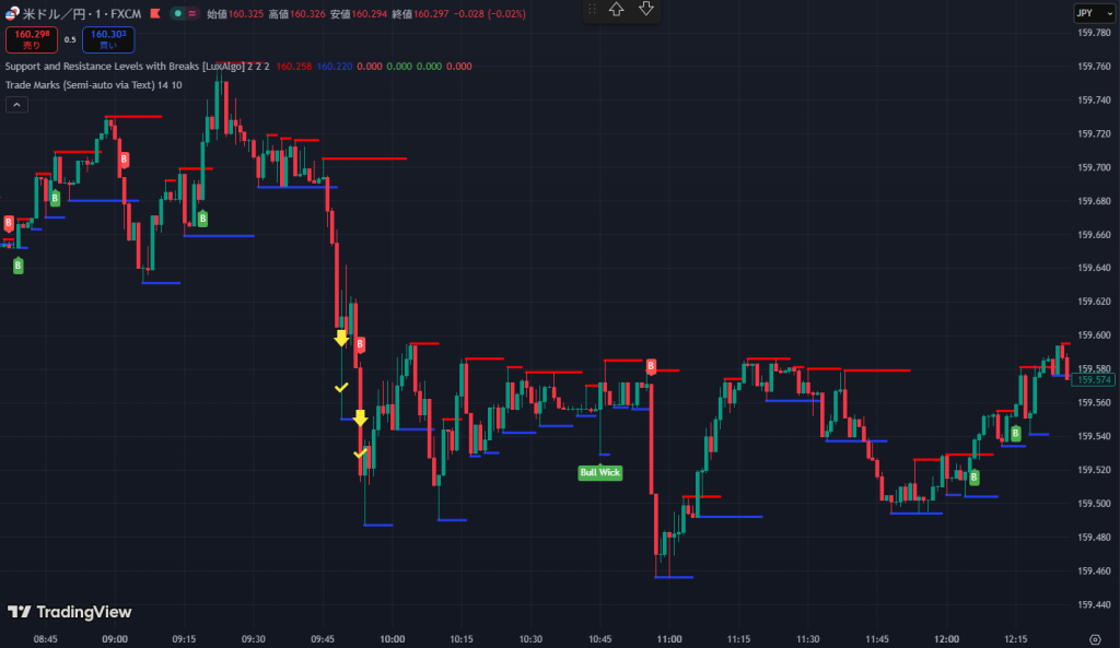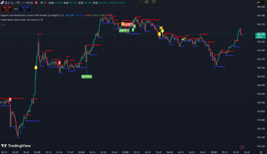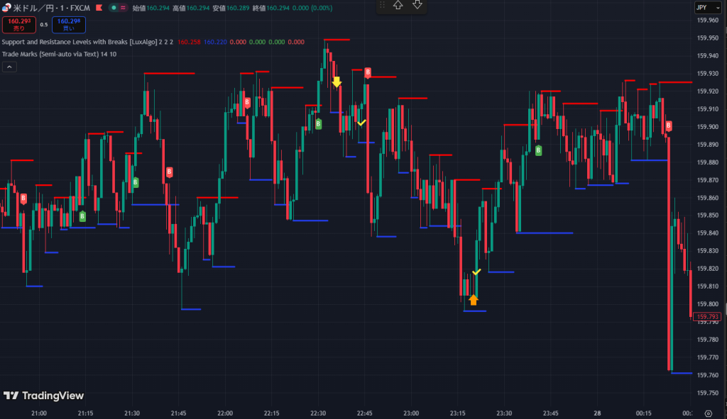 前々から160円では一度逆張りをしてみたかったため、面白半分で160.089でショート。