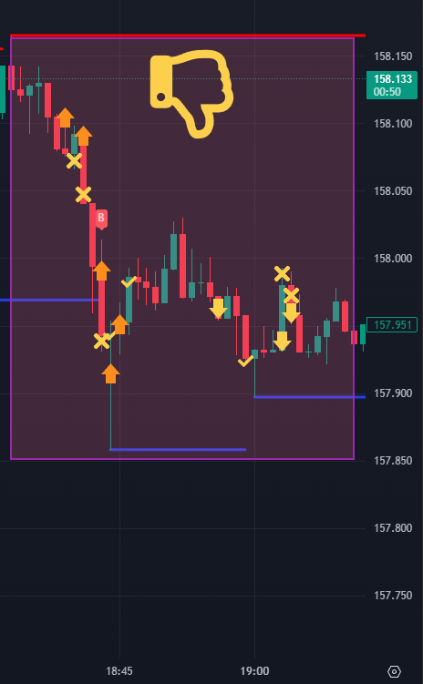 完全に自分都合で158.108逆張りロング。すぐに含み損になるが「これ以上減らしたくない」と思って含み損に耐えてしまう。-4Pipsを超えたところで限界になり損切り。ここでまた頭に血が上り暴走無限逆張りが始まり-20pips失う。。。。書いていて嫌になりました。つらい。